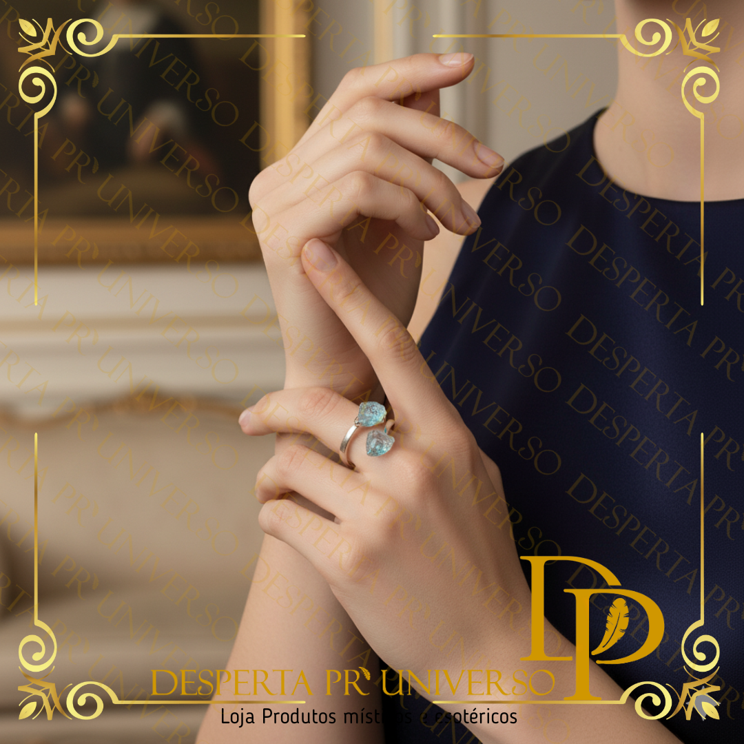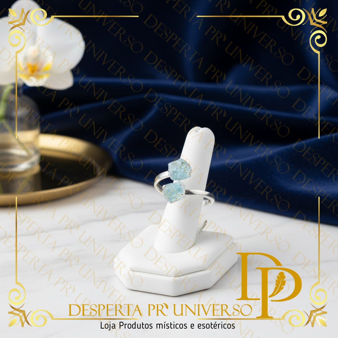 – Prata de lei 925 – Água-Marinha natural em bruto (não polida — energia mais pura e intensa) – Anel ajustável – Embalagem premium com caixa preta, cartão explicativo e consagração energética