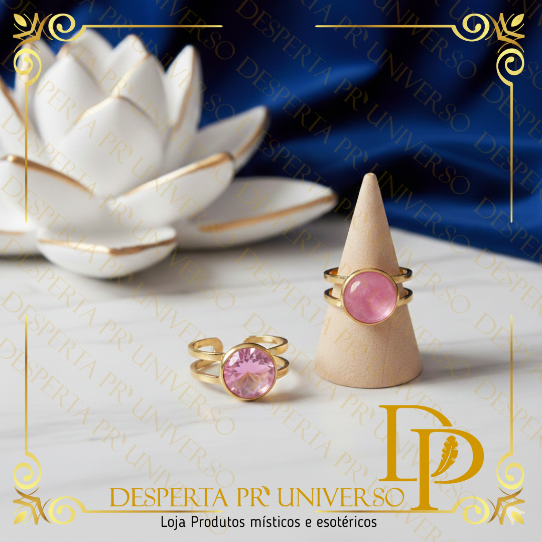 O Quartzo Rosa é a pedra do Amor Universal — aquela que acalma, cura, suaviza e devolve a leveza ao coração. Este anel foi pensado para quem quer trazer mais amor próprio, harmonia emocional e paz para o dia a dia.