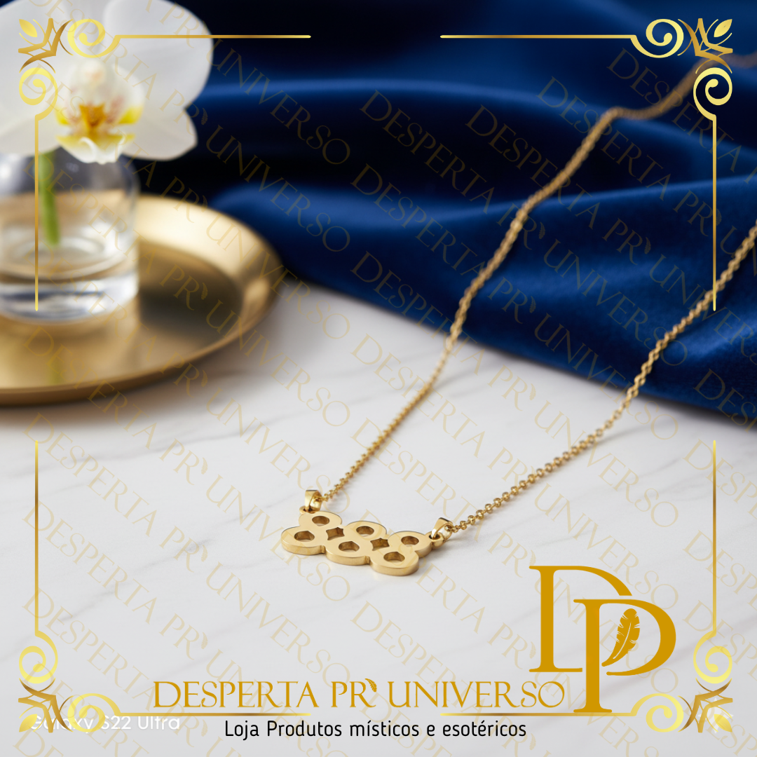 Este colar, em aço inoxidável dourado, foi criado para te acompanhar no dia-a-dia como um amuleto espiritual moderno — discreto, elegante e carregado de intenção.