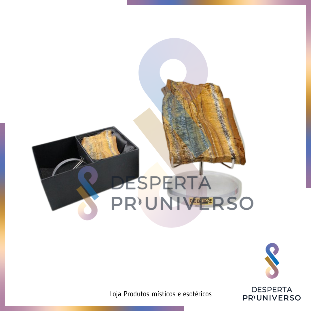 Este kit inclui Olho de Tigre em bruto + expositor + caixa, pronto para oferecer ou para colocares no teu espaço com apresentação completa. O Olho de Tigre é usado em cristaloterapia para proteção energética, foco e fortalecimento do poder pessoal. Em bruto, a vibração é mais direta e “terra”: ajuda-te a manter firmeza, postura e clareza nas decisões.
