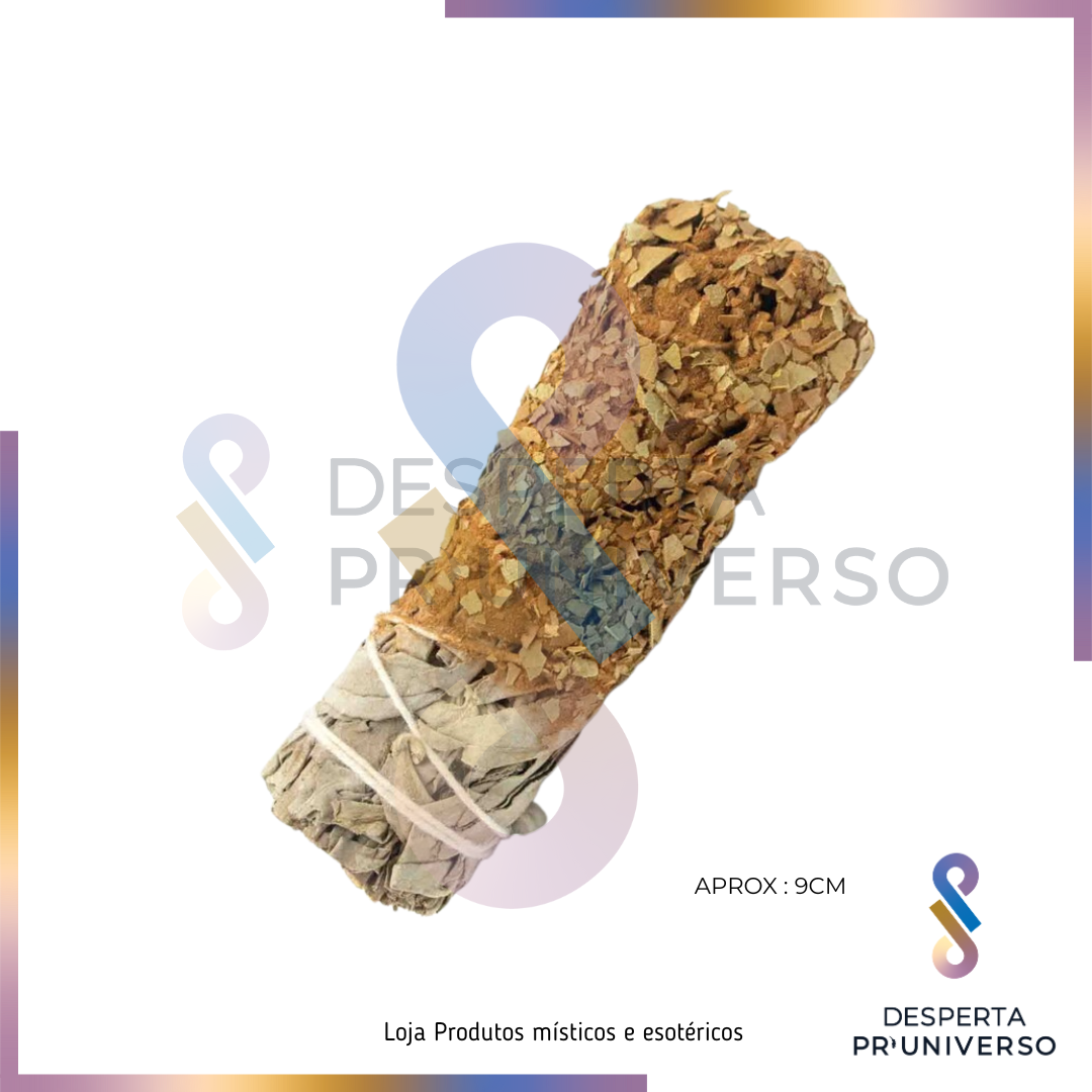Modo de utilização: Acende a extremidade da tocha, deixa a chama alguns segundos e sopra suavemente. Defuma o espaço, objetos ou o teu campo energético, sempre com uma intenção clara. Utiliza num ambiente ventilado e apaga após o uso com segurança.